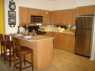 kitchen islands with extra storage and counter space. Other condo features include 4-inch baseboards