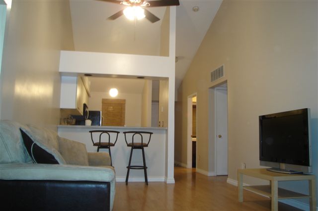 There's cathedral ceilings in the living/dining area, a generous master with his-and-hers closet,